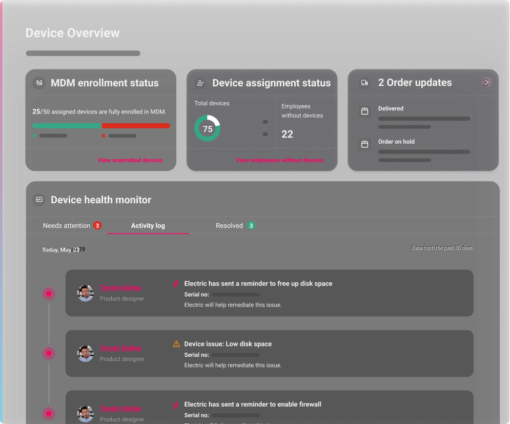 Manage all of your employees, devices, and applications from one platform – with all data fully in sync across the Electric IT Hub and your HR system.